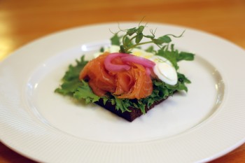 Laktoositon. Sari Liitiän kotileipomon saaristolaisleipää, kylmäsavustettua lohta, keitettyä kananmunaa ja hillottua...
